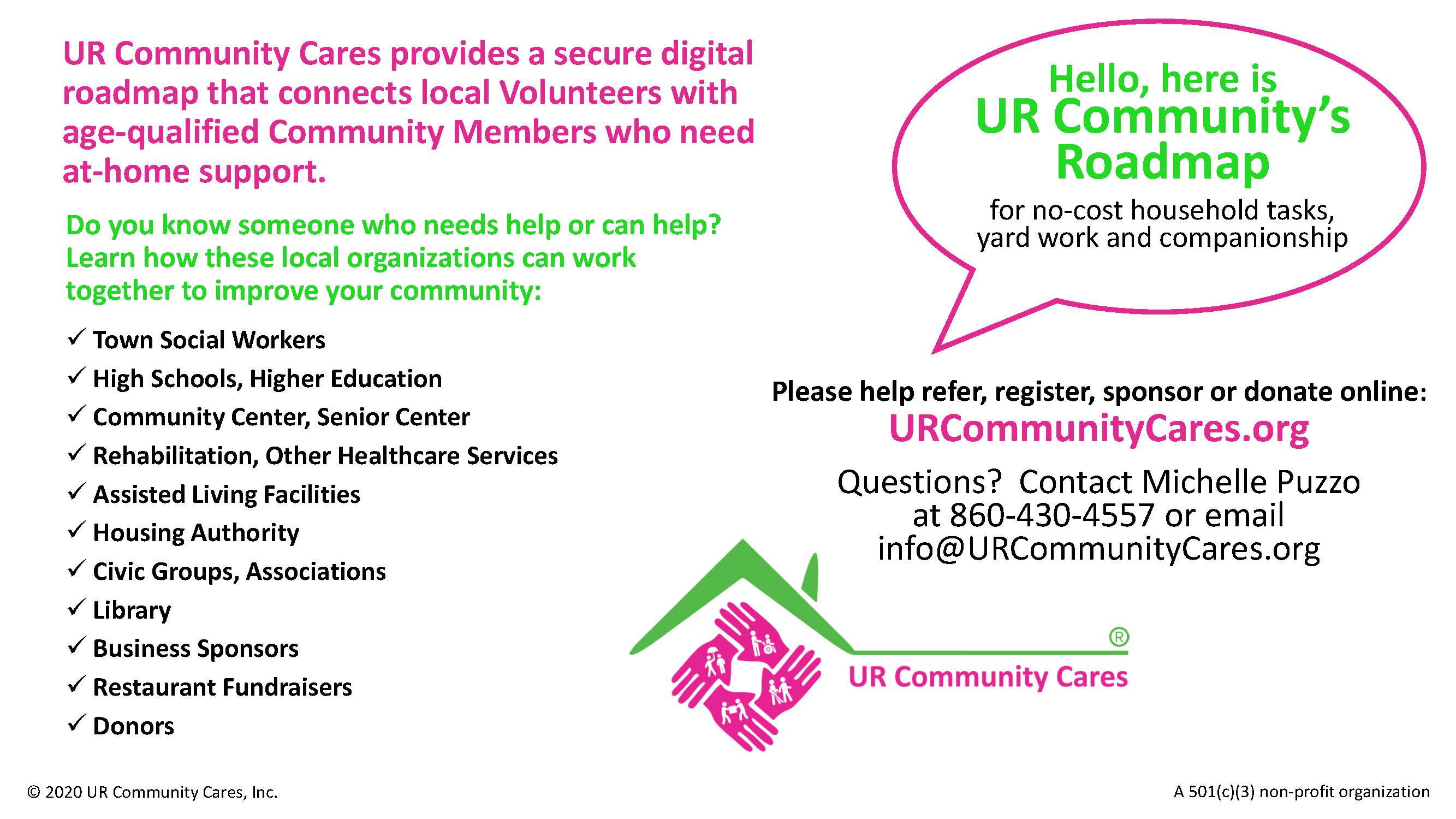 Intergenerational roadmap to connect local Volunteers with age-qualified adults in need of at-home assistnace.